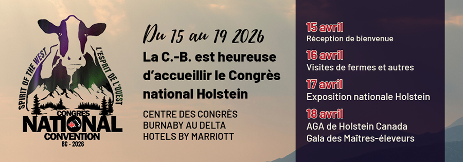 Au nom du comité organisateur de 2026, nous nous réjouissons d’accueillir bientôt les enthousiastes de la Holstein de partout au Canada dans la magnifique province de Colombie-Britannique pour une semaine inoubliable d’échanges, de célébrations et d’inspiration, au cours de laquelle vous ferez l’expérience de « l’esprit de l’Ouest » à son meilleur.
